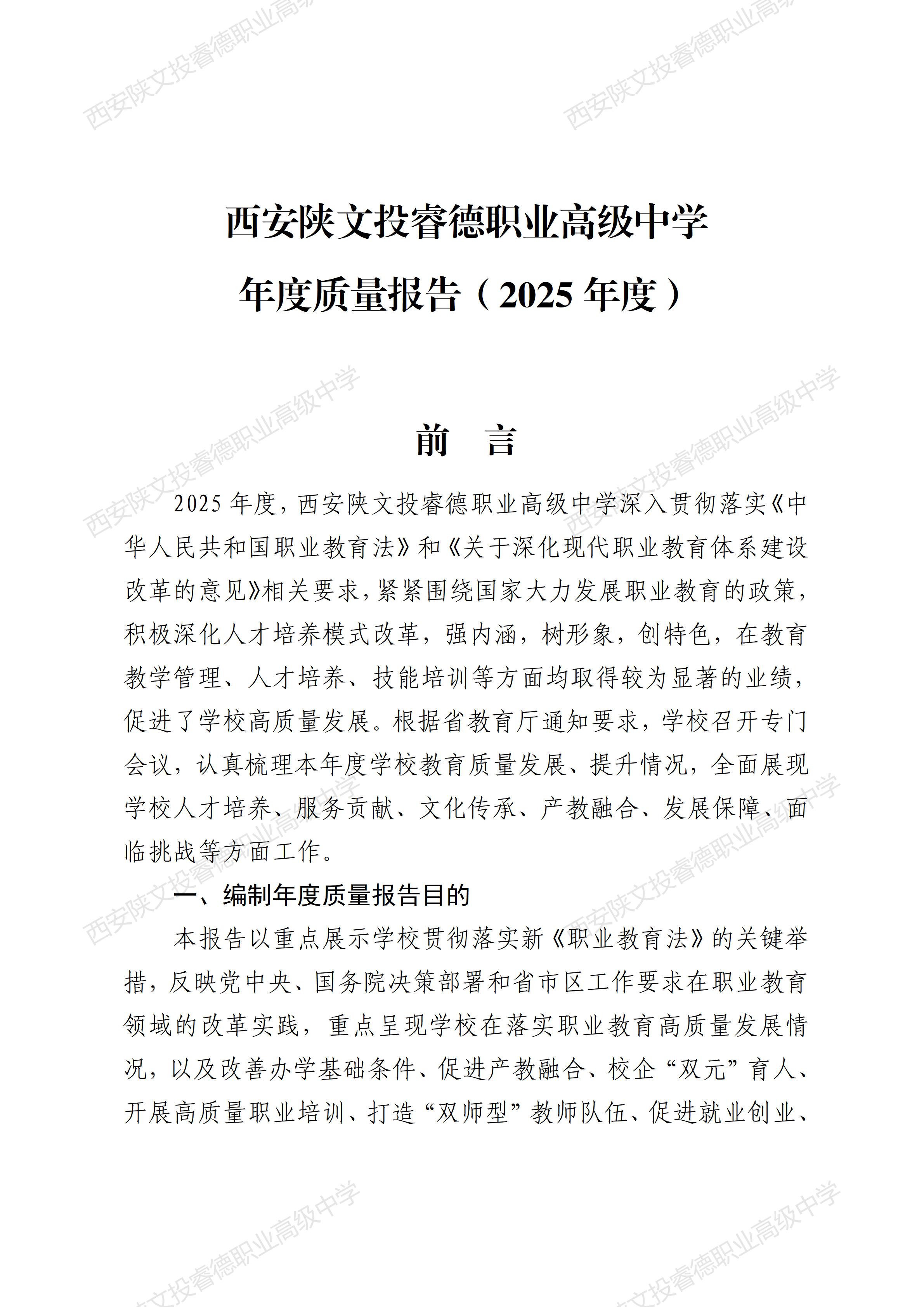 西安陕文投睿德职业高级中学年度质量报告(2025年度)